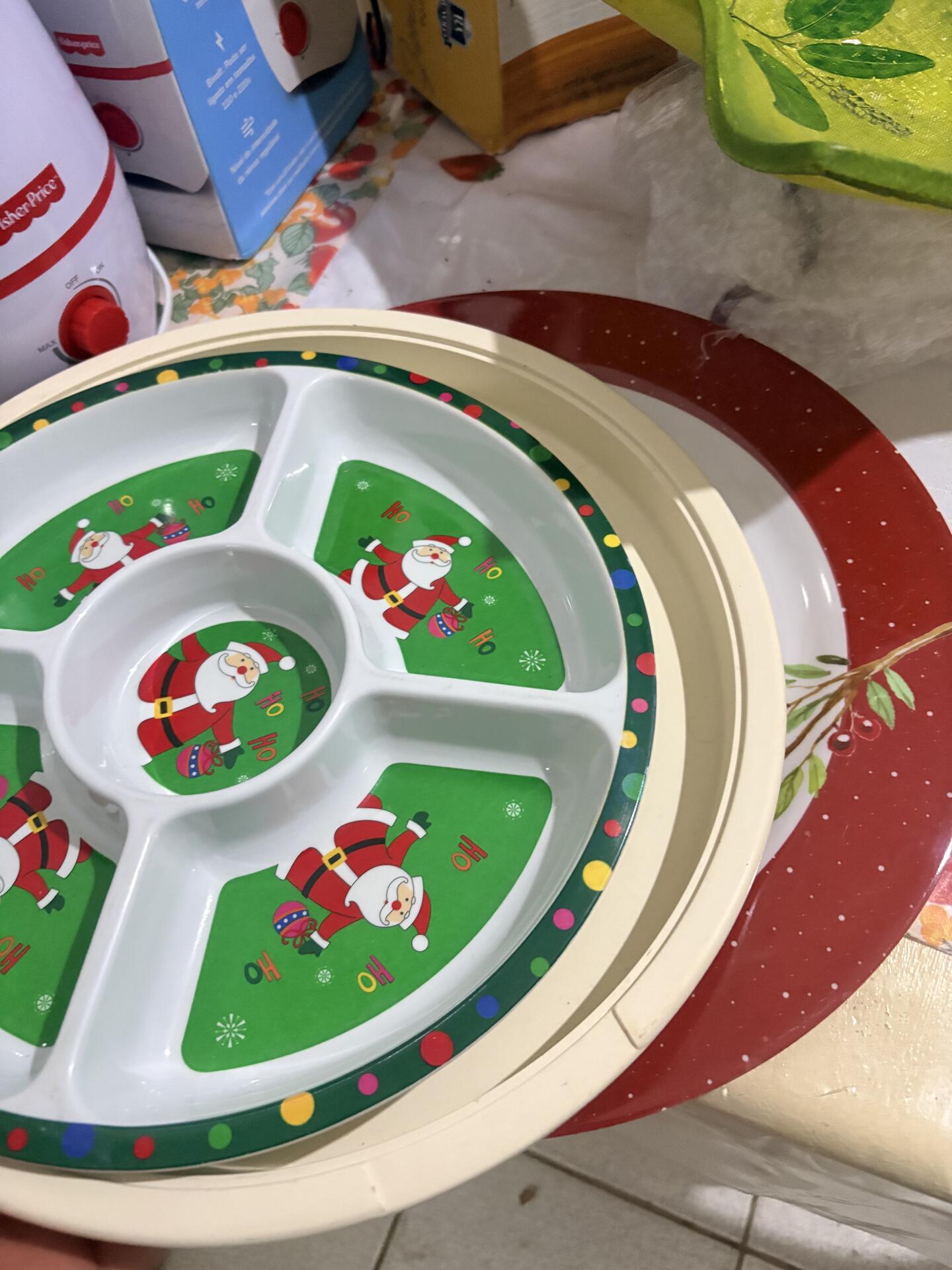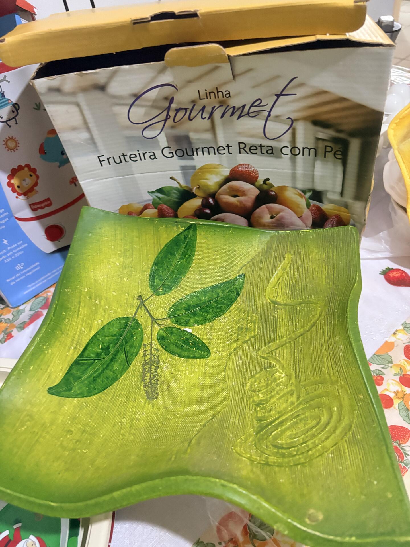 Kit Utilidades para Casa – Infantil + Decoração + Cozinha, Umidificador de Ar Fisher-Price + Fruteira Gourmet + Prato Dividido (tema Natal) + Travessa / Centro de Mesa Decorativo